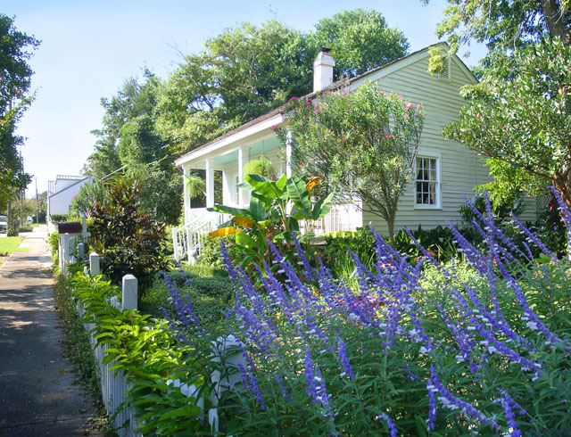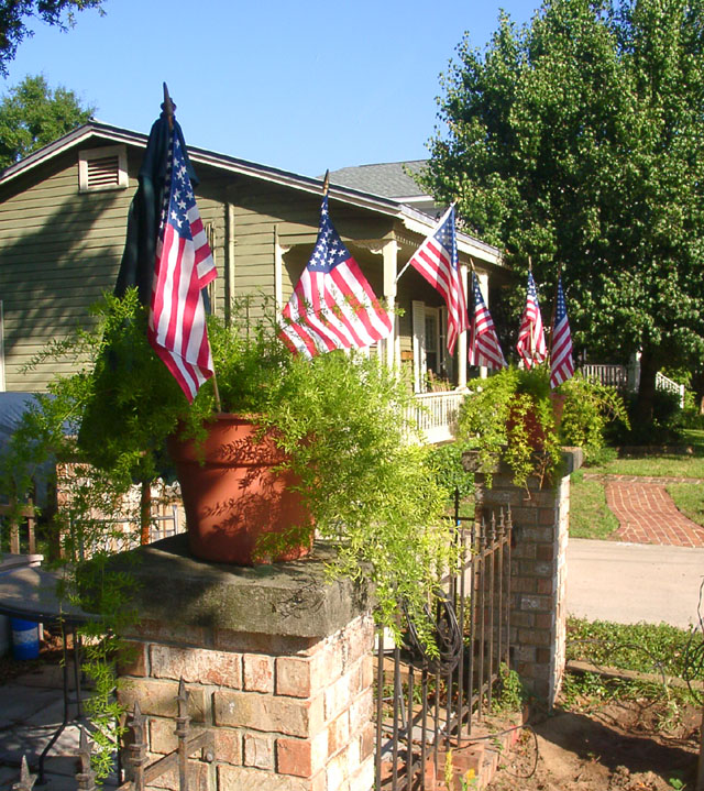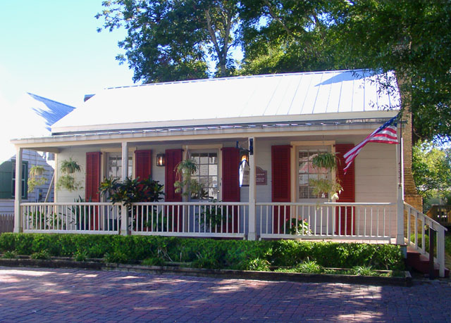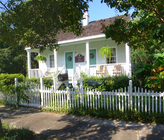 American flags can be found flying from cottages in the historic district. The Creole Cottage is located on Cevallos Street.