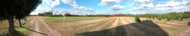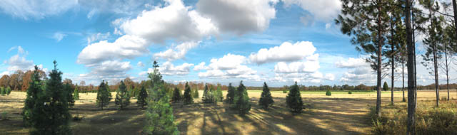 The view from the west tree lot looks back on the green pasture. The mature pines on the right of the frame can be seen as the tree line in the photograph above on the left of the upper tree line.
