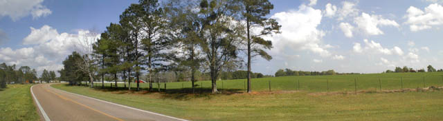 There are cotton fields stretching for several miles on both sides of Kansas Road.
