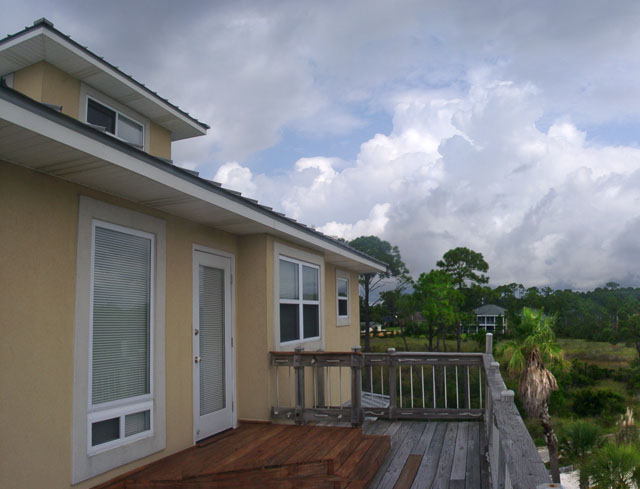 This north view shows the facade of the house which faces the Gulf of Mexico