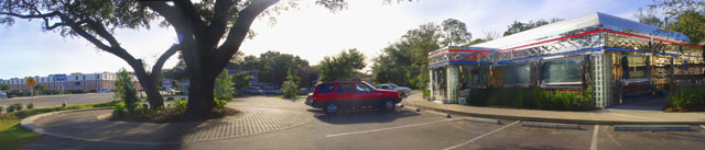 The diner is surrounded by live oak trees and takes advantage of the picturesque setting at a curve in Scenic Highway