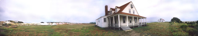 This view of the Ranger Station is taken near the wreck of the Norweigan bark, the Catherine, which is located in 15 feet of water where it sank on August 7, 1894. The outline of the vessel can be seen as a dark shadow on the surface.