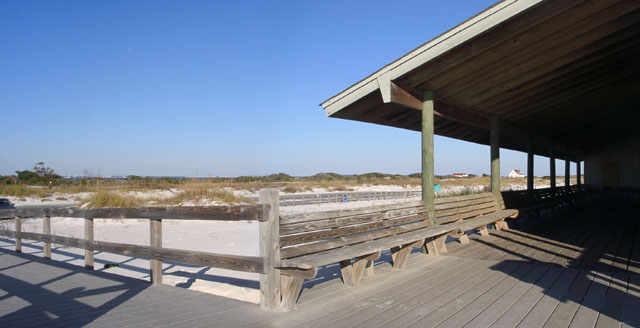 Battery Langdon is directly across Fort Pickens Road from the shelter and walkway leading to the gulf.