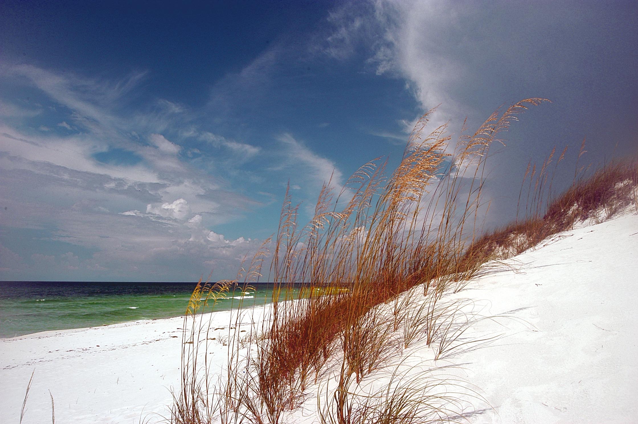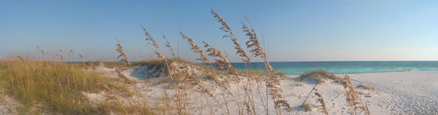 The white sand actually traveled from the Appalachian mountains from local rivers. The dunes are tops with a smattering of sea oats.
