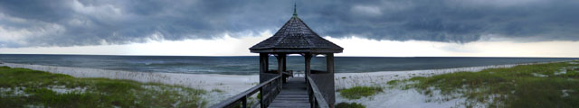 The gazebo overlooks the Gulf of Mexico on the beachfront.