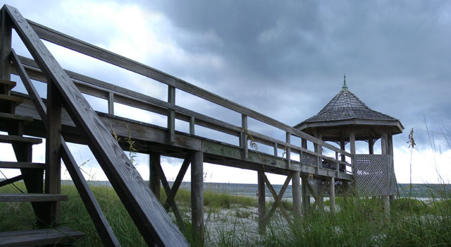 Boardwalks aid beach preservation by making a path to the water and lessening impact on the dune formations.
