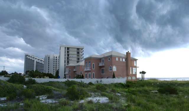 There are several large condo units located to the east of the gothic house on Perdido Key Drive.