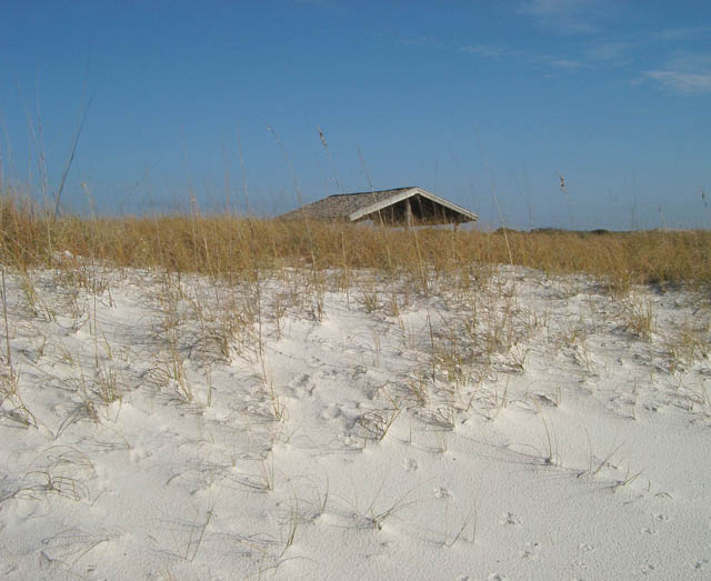 Dunes on the side and front are held in place by the extensive root system of sea oats.