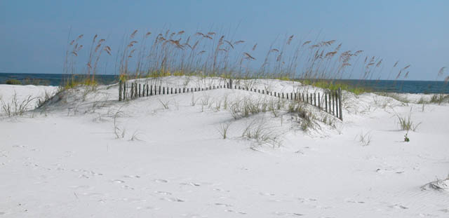 The initial step in restoration of deflated sand dunes is to use structures that can accumulate sand. Dune building fences can be erected in order to trap sand and reconstruct new dunes.