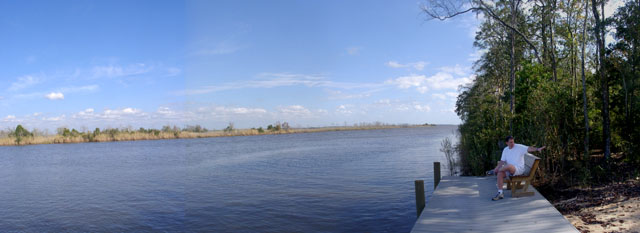 Dead Man's Island is the left bank of the channel leading out into Escambia Bay.
