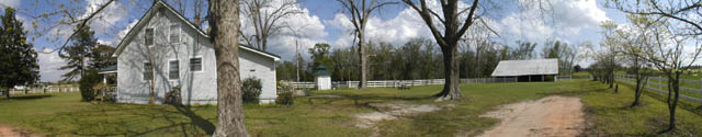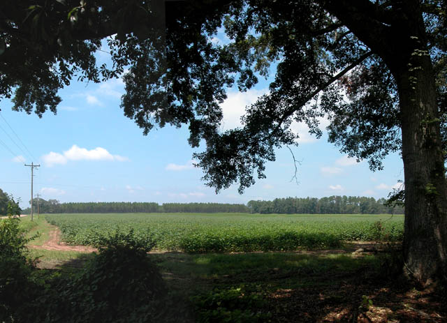 The craftsman style cottage is evocative of the farm houses of the 1920's and 30's. It sits on the edge of a cotton field. -