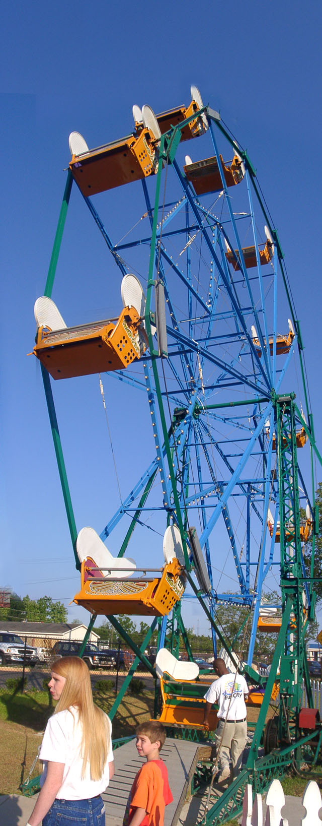 The merry-go-round is located near the park entrance adjacent to the ferris wheel.
