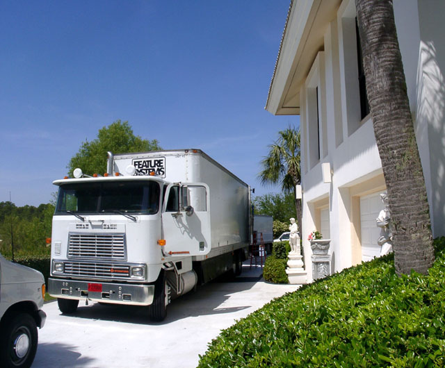 The camera truck, the sound van and the generator power plant were parked near the east side of the home.
