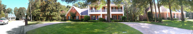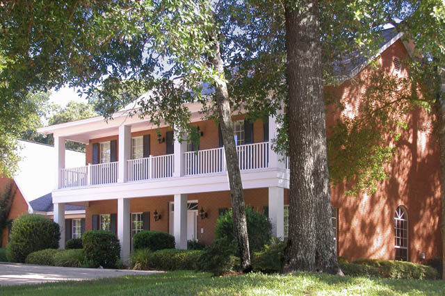 The stone on the exterior of the house were ballast stones thrown ashore by 19th century sailing vessels that were in Pensacola to take on lumber. Stones are commonly used in large North Hill homes.