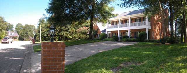 This home is another example of classical revival style. The curved central portico gives the house a soaring grace.