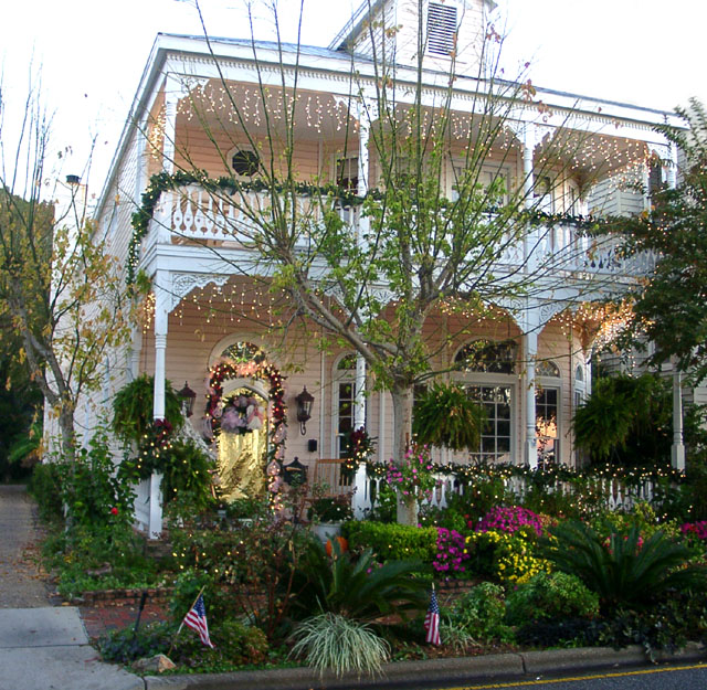 The house is elaborately decorated for the Chrismas season. Diane Bigler was presented with a first place award in the multi-use category in the 2002 Pensacola Historic District Property Owners Christmas Decorating Contest.