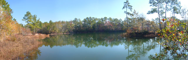 The series of lakes wind around hills. Each lake is approximately 15 acres. -