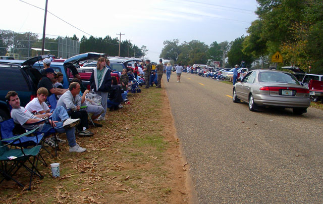 Crowds line Hwy 182 for the occasion of the 2001 Redneck Christmas Parade. -