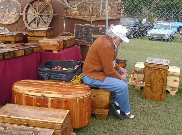 One of the craft areas at the Redneck Parade featured woodcarving. -