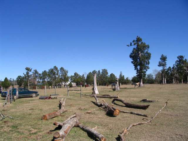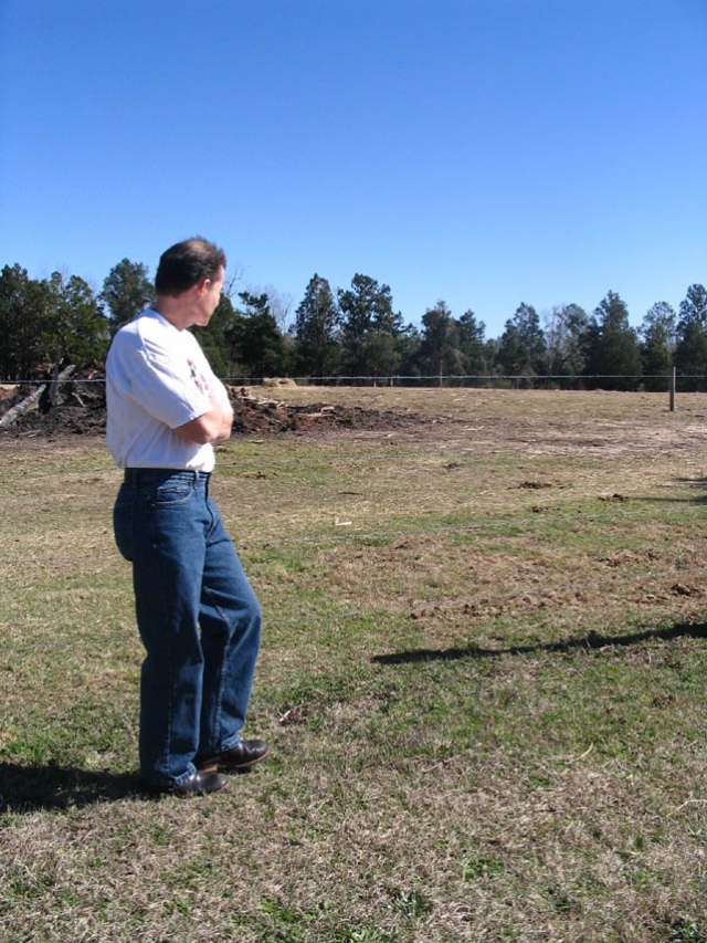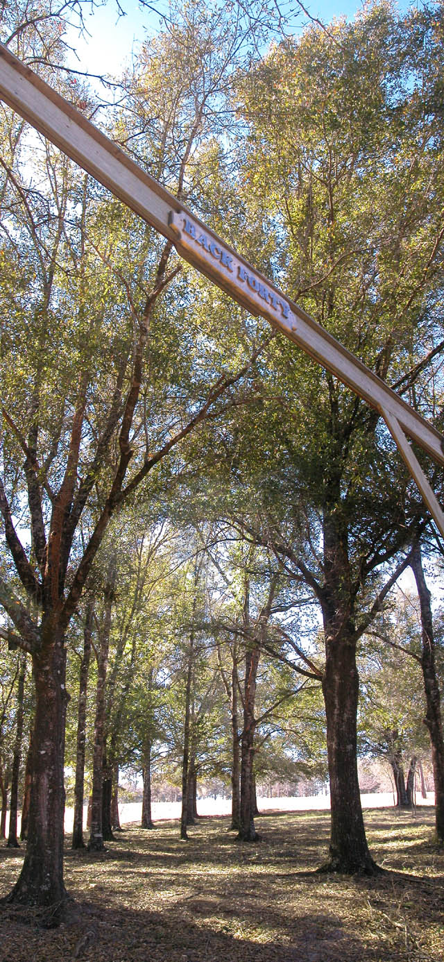 A stand of long-leaf pines and slash pines create a picturesque view of pasture land along this country road.