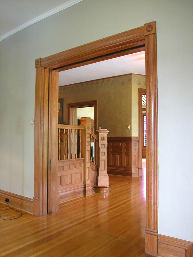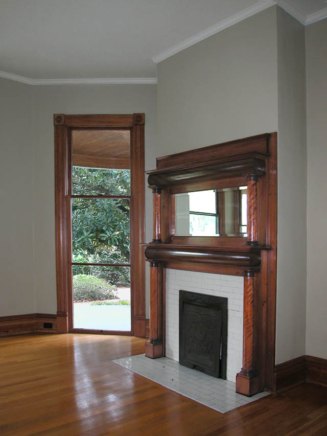 The term four-square refers to a floor plan with a broad central hallway with two rooms to either side. The rooms were large and square in proportion. Two back-to back fireplaces and a common chimney separated each pair of rooms. Porches were part of the social tradition in the days before air conditioning like an outside parlor. Along the streetscape, porches are aligned like one long room.