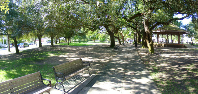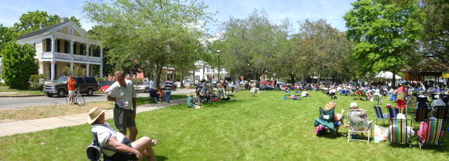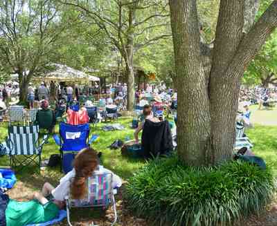 The crowd is gathered to enjoy the annual Jazz Festival. Musicians stage events in the gazebo. -