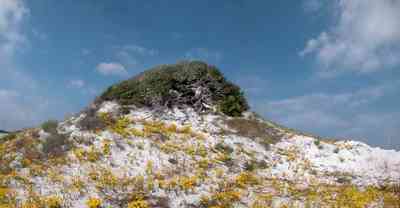 Beach elder (Iva imbricata) has sparse, woody, upright stems and fleshy narrow bright green leaves. Small lavender flowers occur in late summer. Beach elder accumulates sand rapidly and produces low rounded dunes. -