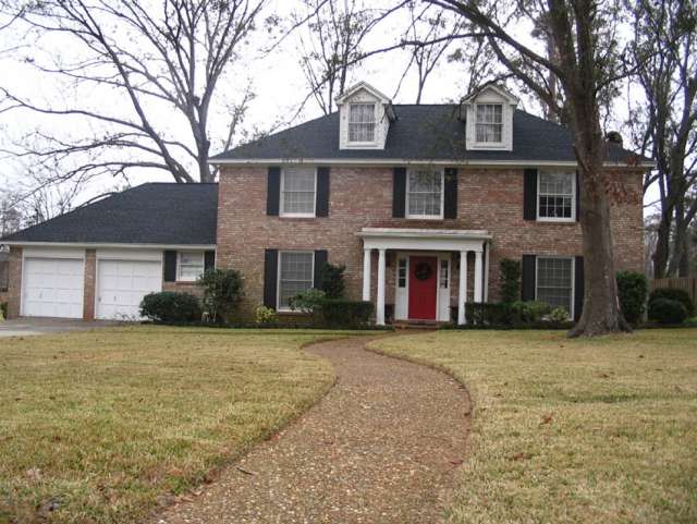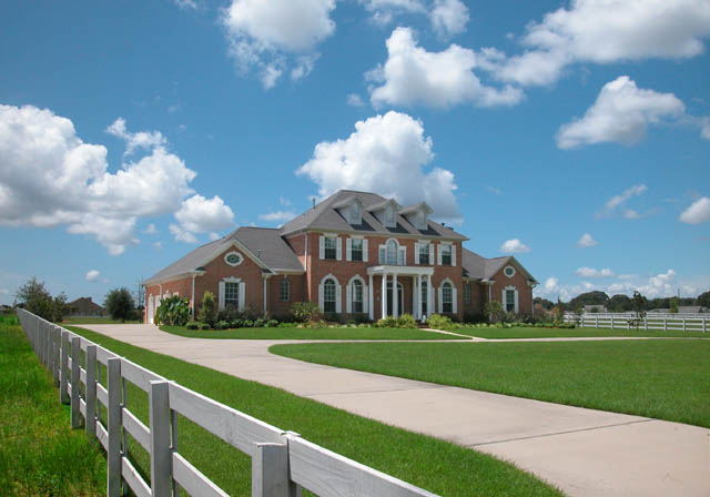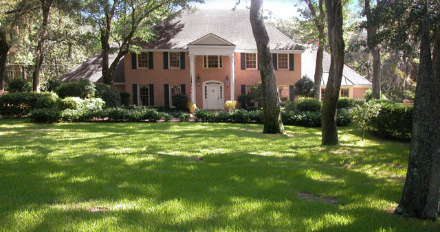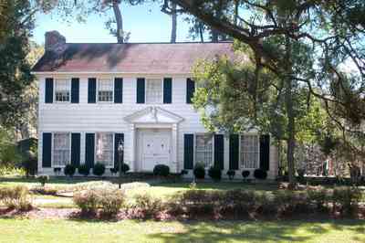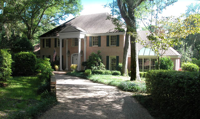 The colonial style home sits atop a small hill adjacent to Scenic Highway.