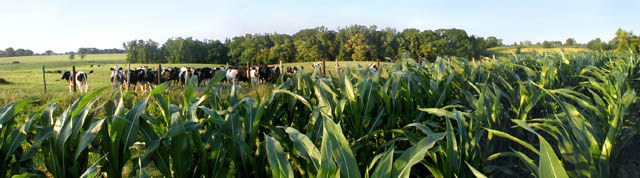 In between corn fields there are pastures were the dairy cows graze. -