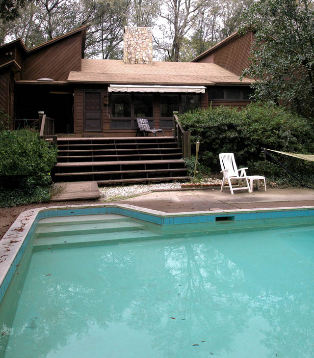 There is a glassed-in room used as an office in the front of the north wing of the house which matches the screen porch on the south wing.