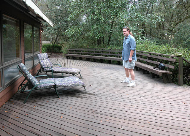 The deck is on the north side of the house. It is 13 x 25 feet across the back of the home.