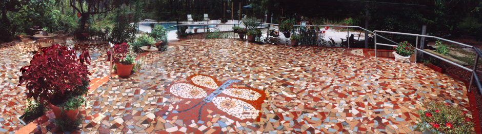 The dragonfly embedded in the terrazzo tile was designed and executed by the owner.