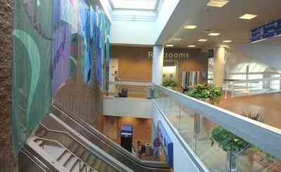 Filters tag city state Photos tagged ticketing area ticketing area Escalators transport passengers from the first floor ticketing area to the concourse. The parking garage entrance can be seen to the right of the photograph.