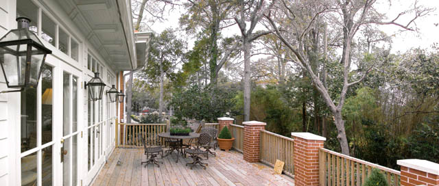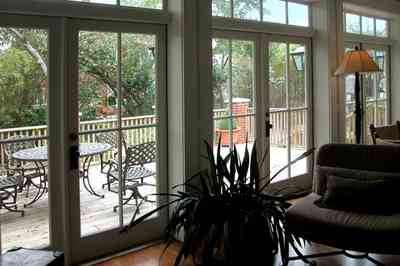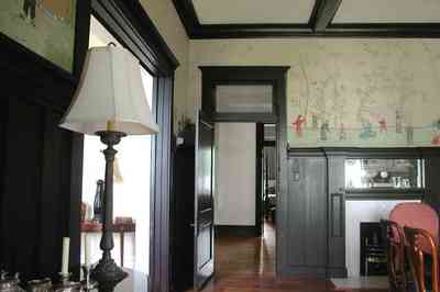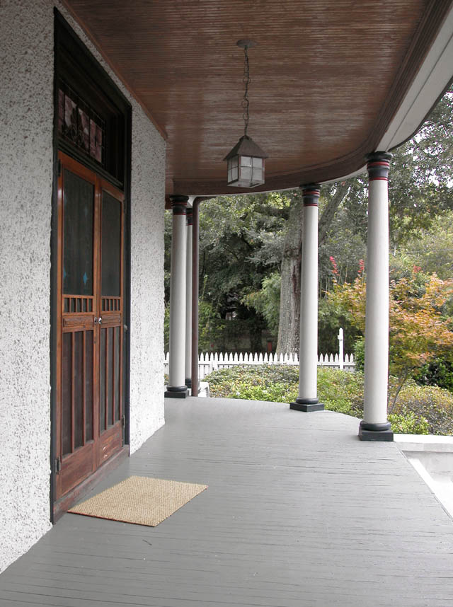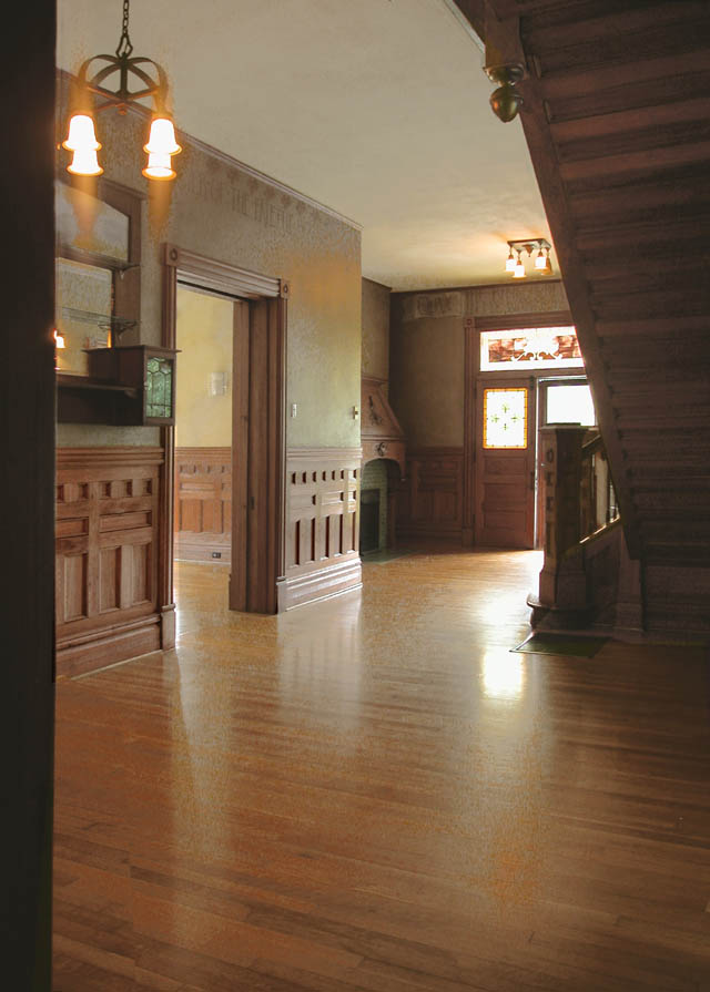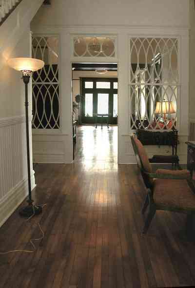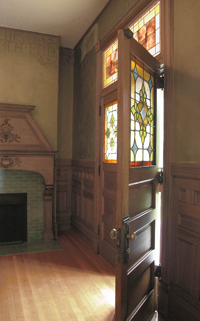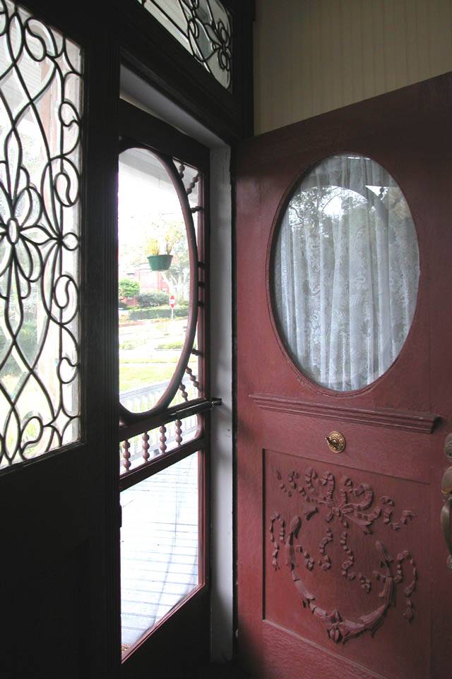 The beveled glass at the entrance and over some of the large bay windows in the house are all original. The front door was originally beveled glass but it was destroyed during an "Animal House" party when aviators rented the house in the 1990s.