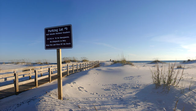 The national seashore maintains boardwalks and parking bays along Via de Luna Drive on Santa Rosa Island
