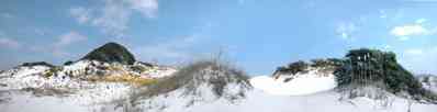 Beach elder (Iva imbricata) has sparse, woody, upright stems and fleshy narrow bright green leaves. Small lavender flowers occur in late summer. Beach elder accumulates sand rapidly and produces low rounded dunes.