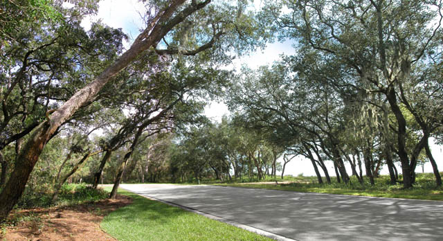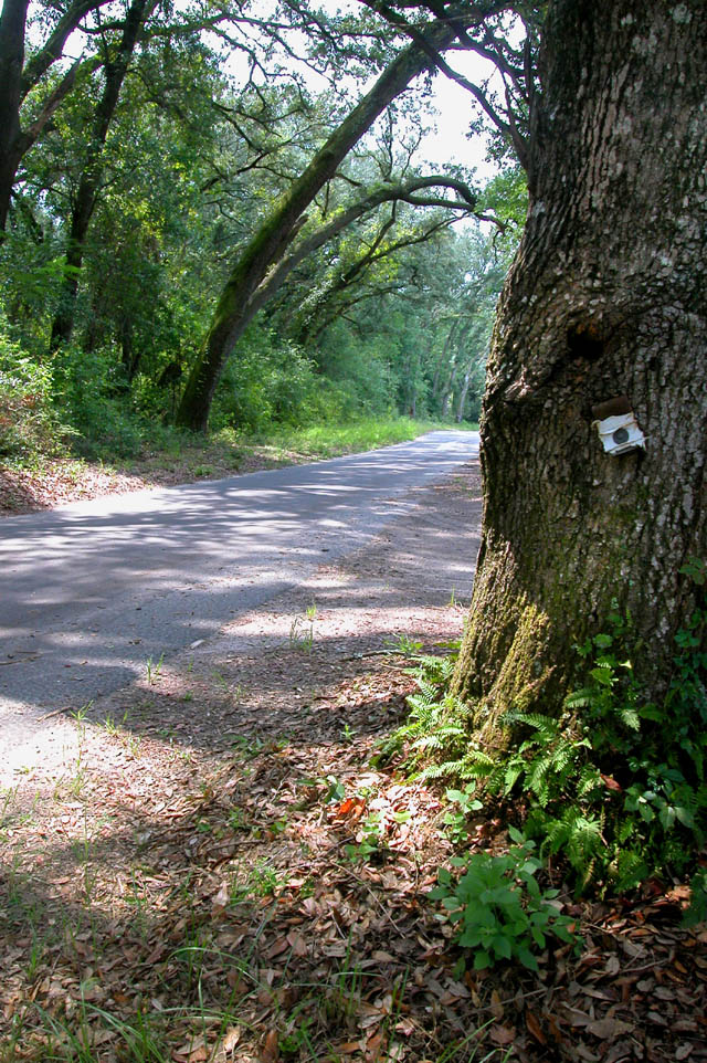 Spanish moss hangs from the oak trees which form a tunnel over the road. For information about Spanish moss, click here. -