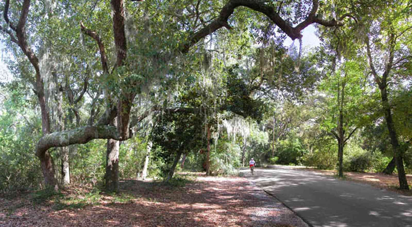 • Gulf-Breeze:-Shoreline-Park-South_05.jpg:  spanish moss, oak trees, park, country road, two-lane road