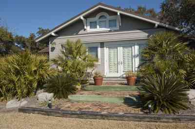 The cottage is a Gulf Coast architectural style with two front doors. The house was divided into two one-room apartments. The pyramid roof was once a common sight in Pensacola. The style is wind-resistant during hurricanes and tropical storms.