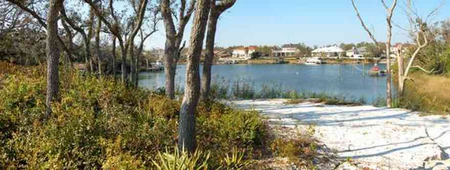The path leads to a sandy beach along Escmabia Bay.