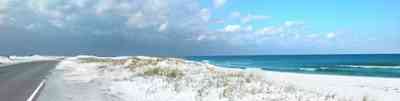 This aerial shows the road that goes the length of Santa Rosa Island. All beach areas can be reached by road, but the road can't be seen from the water.