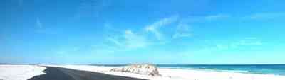 The beach road bisects Santa Rosa Island.